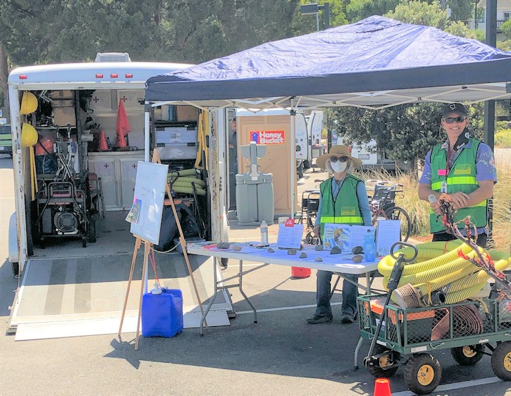 John Schlage, Aggie Bayer, and Joe Novitsky arranged the Disaster Response trailer and put out information on Community Emergency Response Teams. They also gave away Covid test kits.