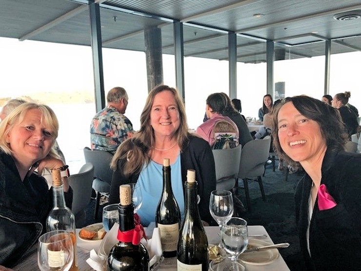 Saturday, May 14, was a beautiful evening for a night with the mayors. Yes, “mayors” plural. Christine Templin was the winning bidder for a dinner with the mayor of Sausalito at the Sausalito Floating Homes Virtual Gala and Tour last June. Ed Lopez and I were honored to host Chris, the former mayor of Sausalito Jill Hoffman, and the current mayor Janelle Kellman aboard The Fairy Tale for wine tasting before dinner at the Spinnaker. Jill Hoffman was mayor at the time of the donation, but since then, Janelle Kellman has taken over, so we got a two-for-one deal on mayors of Sausalito!