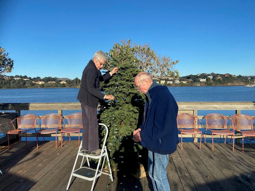 Several docks hosted dinner parties. On Gate 6 ½ Linda Davis and Mike Carroll carried on their tradition of buying and decorating a tall tree at the end of the dock.
