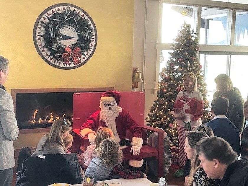 At the Sausalito Yacht Club, kids eagerly greeted the arrival of Santa by boat.
