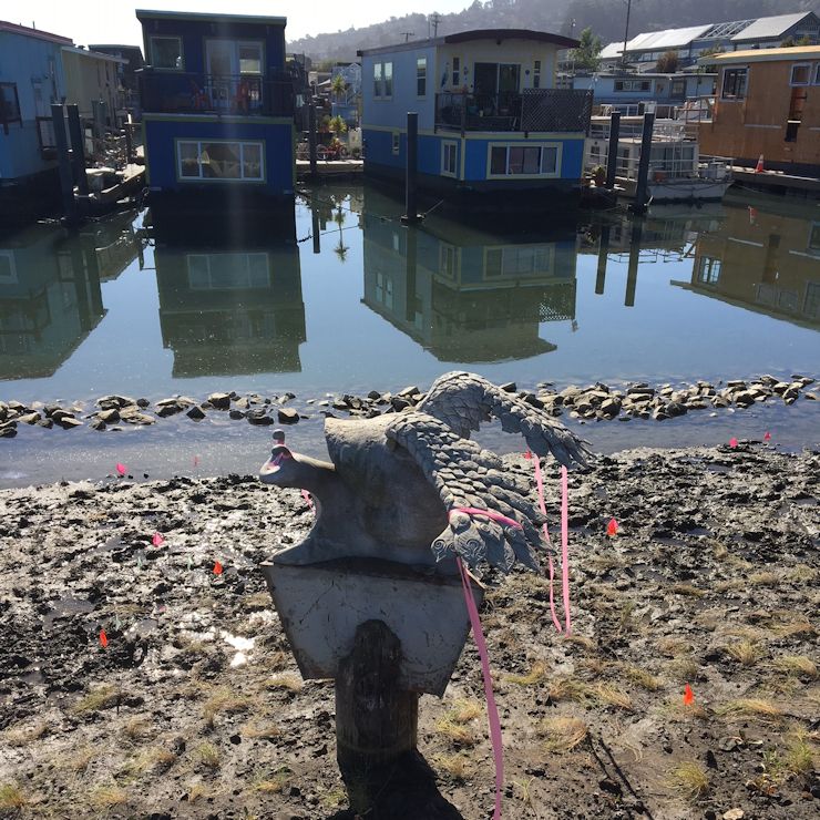 Jack’s Flying Snail sculpture, which he created as an art school project, is still on that piling, just off the southern edge of the new Waldo Point Harbor park.