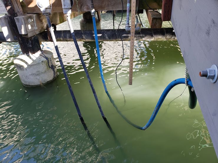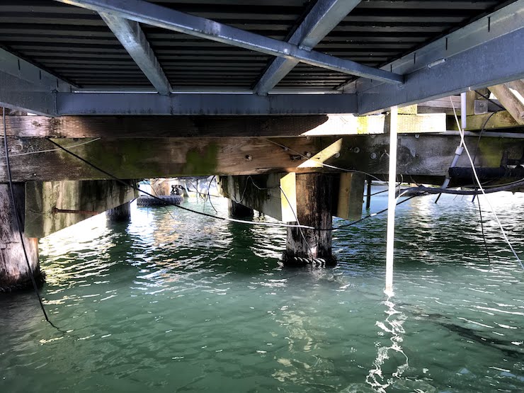 For us in the floating homes community, higher tides mean it’s time to talk about the feasibility of floating all the docks to protect our utility lines. Submersion in salt water is not good. In October, one of the brackets holding up Liberty’s pressurized water pipe broke. The old bracket was likely corroded by salt water, and the pipe sagged, causing a leak. We can look to the new Charles Van Damme dock for one solution. Power, sewer, water, and gas lines are all embedded above the floats and below the decking. Rather than fixed piers at risk of saltwater damage, the floating dock and utilities rise and fall with the tides.