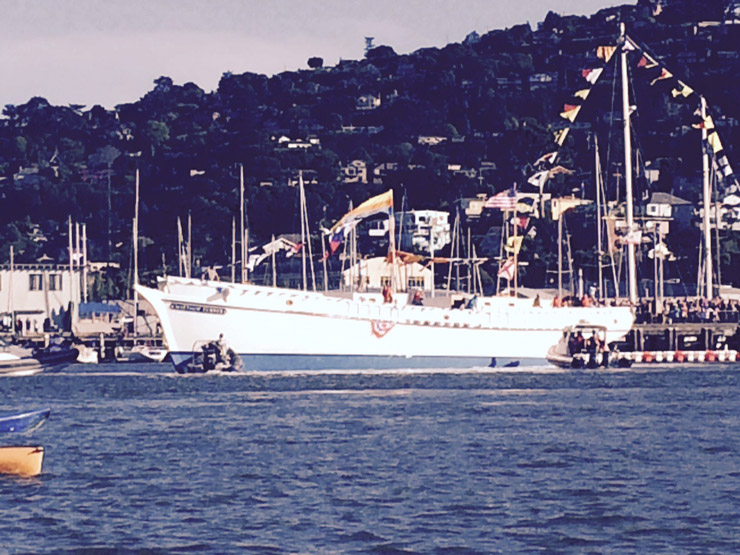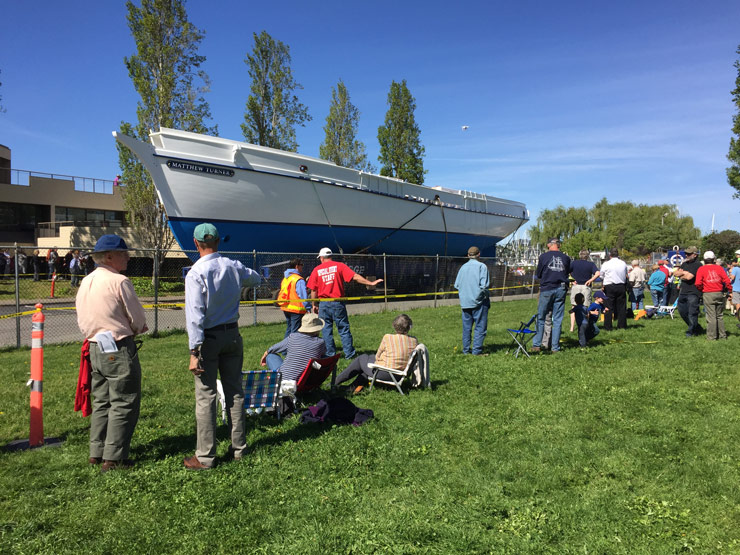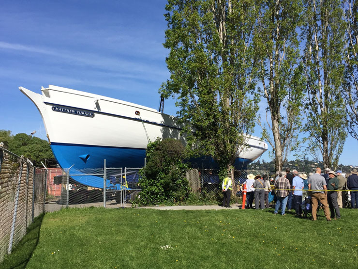 King Neptune was smiling down on Sausalito April 1 for the launch of the tall ship Matthew Turner in perfect sunny weather. After years of planning and thousands of volunteer hours, this labor of love reached a major milestone when the 100-foot hull got her first taste of salt water.