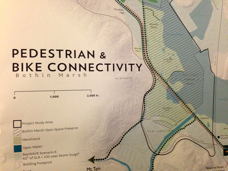 The area north of our floating community turns out to be the canary in the coal mine. Because of its location and geography, this end of Richardson Bay and Bothin Marsh will likely experience sea level rise earlier than most. Josh Collins, chief scientist of the San Francisco Estuary Institute, noted, “There’s nothing to stop water from the Golden Gate.”