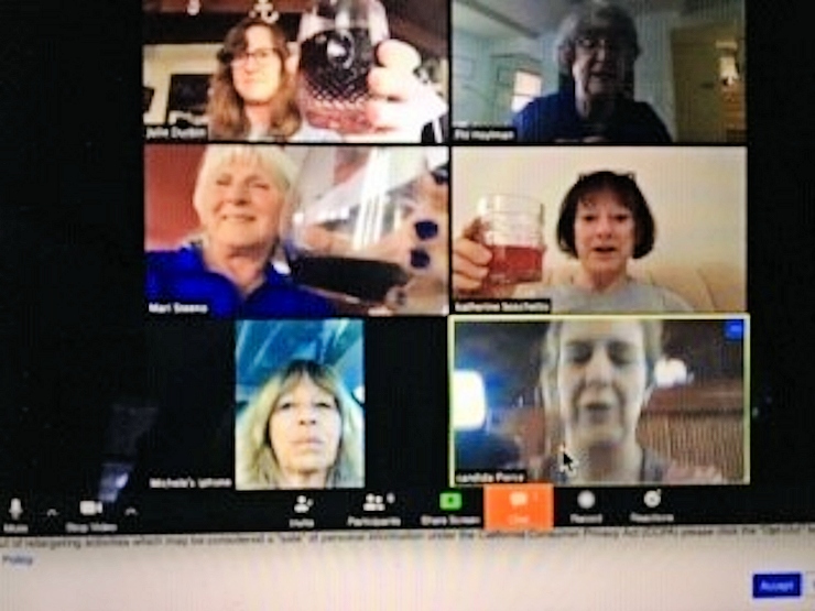 Perhaps now more than ever is the time to pause and reflect on the beauty of our surroundings, and the cohesiveness of our community. Folks are coming up with clever ways of communing remotely. Recently, Michele Affronte, Mari Steeno, Julie Durbin, Flo Hoylman, Katherine Boschetto and Candida Pierce logged onto Zoom to toast each other from the comfort of their own homes. People in Mill Valley began howling on their doorsteps or decks each evening at 8:00 p.m. as a gesture of solidarity and support for first responders and health care workers. Unfortunately, the howling freaked out some neighbors and their pets, so various other group exercises have been suggested, like singing and bell ringing. We can be sure there’ll be more to come.