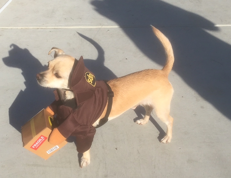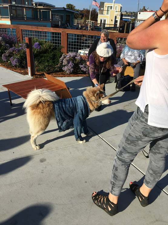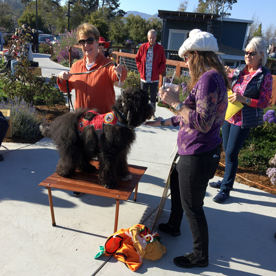 Fifteen dogs entered the dog show! Judges Julie Durbin and Mari Steeno judged the entrants and awarded prizes in three categories: small, medium, and large. The winners were Joey, in a UPS costume, with his owner Judy Shaper; Puna, the medium-sized winner, owned by Pam and Denise of Issaquah; and gorgeous Lucy owned by Ted and Linda Sempliner.