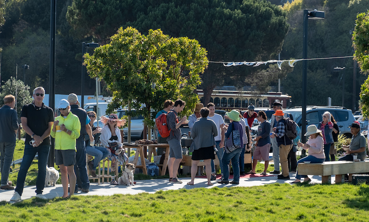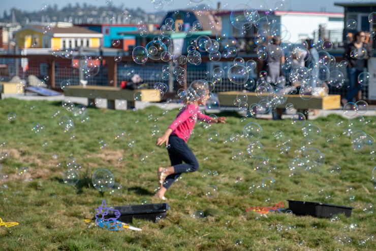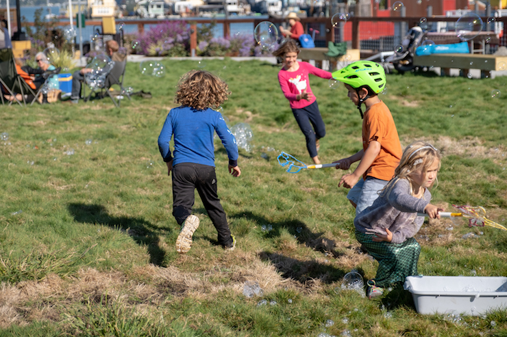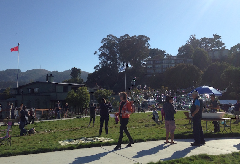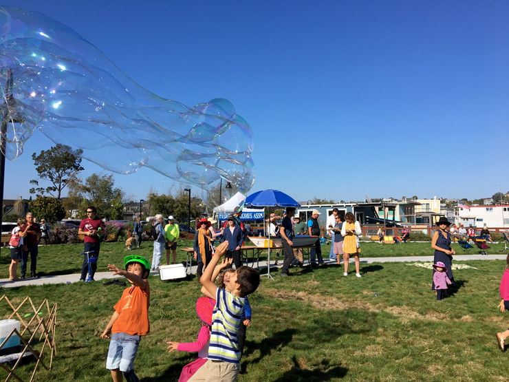 To add to the festive feeling, Sterling Johnson of Fairfax entertained packs of kids and grownups with beautiful large and small bubbles. Dona Schweiger answered questions about the Van Damme ferry exhibit, and the FHA collected ideas for how to serve the community better. Many people asked for more gatherings like the Day in the Park!