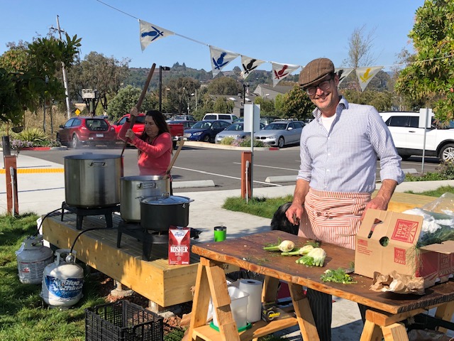 Davey Jones, Shoshana and Maria Finn started cooking up two large pots of soup at 10 a.m., and the aroma of lentil, ham and white beans drew an eager crowd.