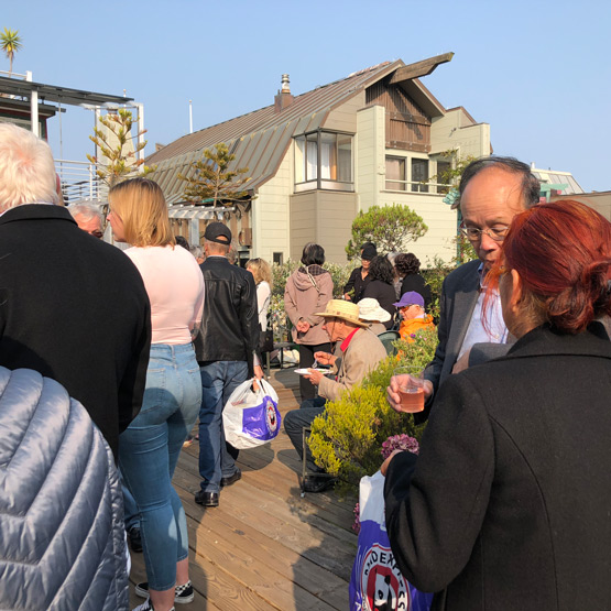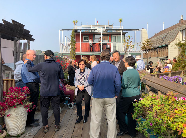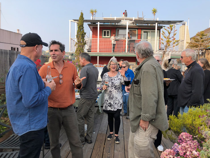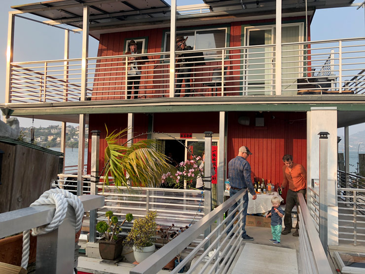 Ted eventually settled in Richardson Bay in the mid-1970s, where he took part with T.J. Nelsen in constructing the various docks at Waldo Point, often behind lines of state troopers shielding the workers from protestors. His second boat still sits with its iconic blue geodesic dome facing the bay, attracting attention and discussion from boaters and paddlers-by.