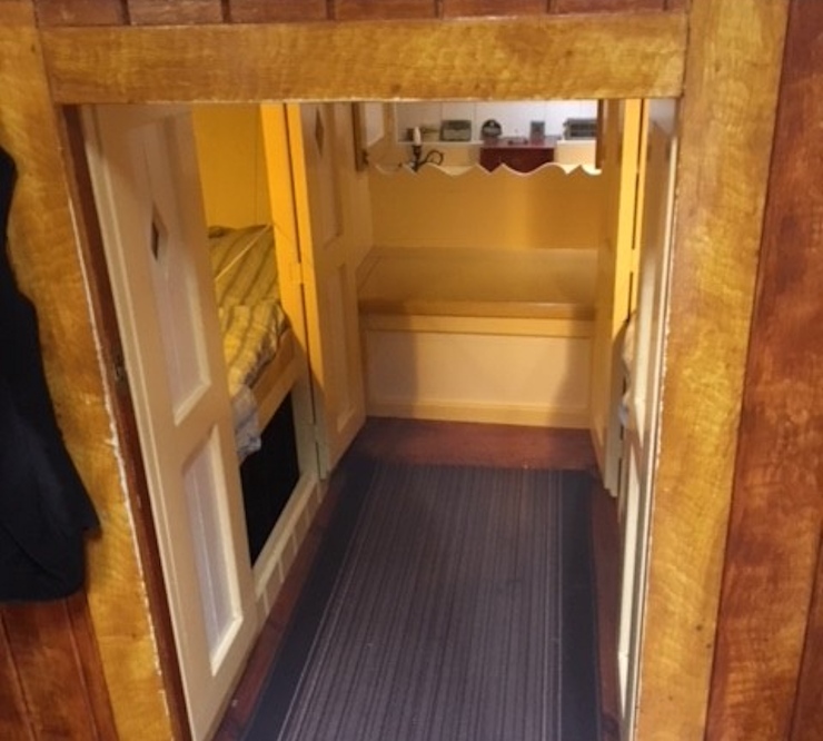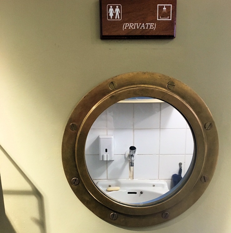 Plumbing is similar to our homes, though the terminology varies a bit: “Wastewater is pumped away by a mill-pump which is located behind the toilet. The mill-pump mulches the waste and pumps all waste water through a small pipe and into the sewer system.” As we left the museum, we could see the gas, water, electricity, telephone and sewage lines connecting the houseboat to shore.